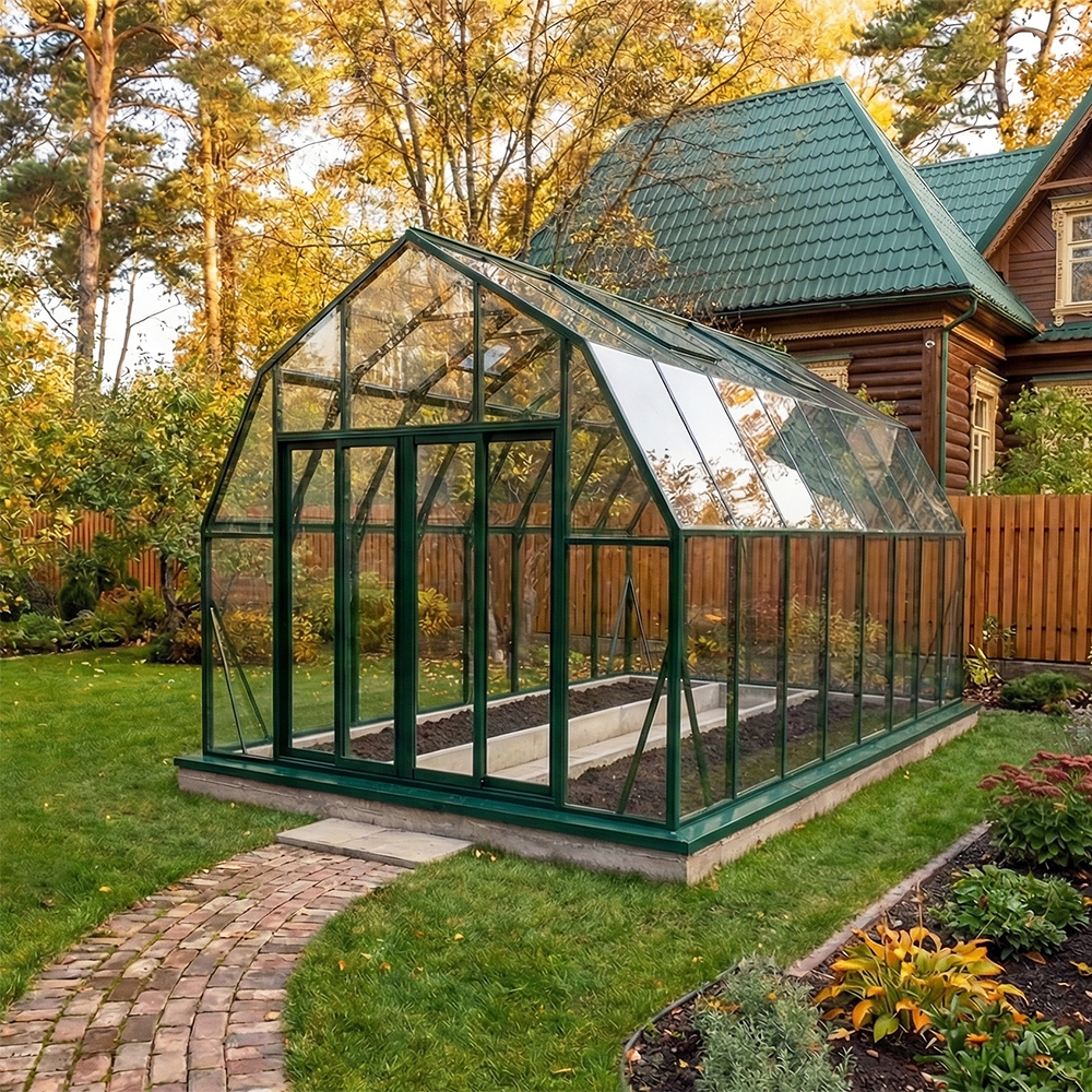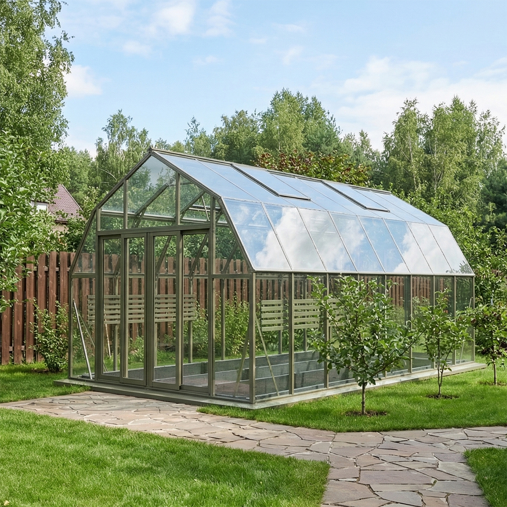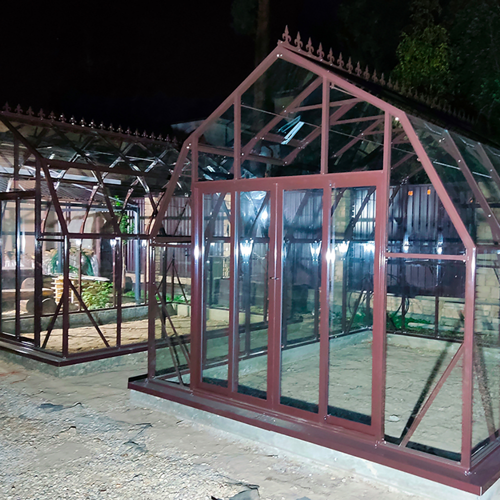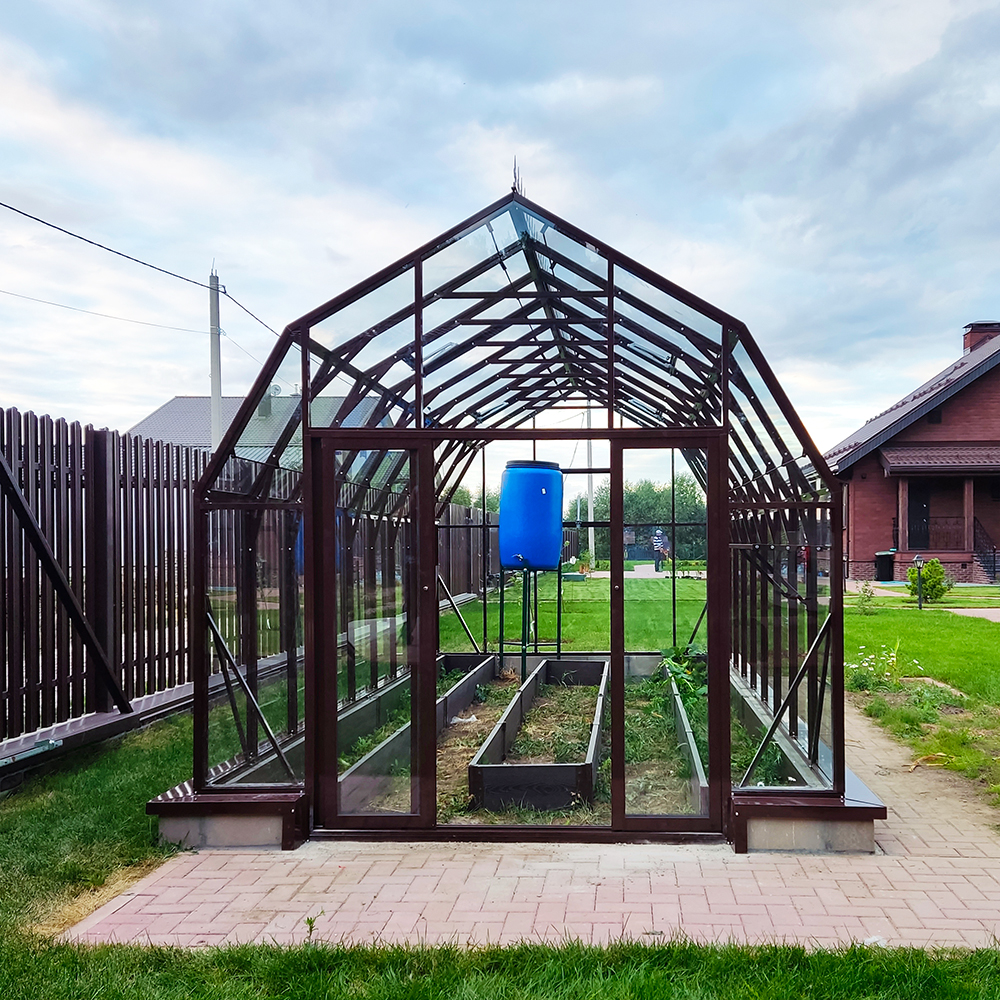 Популярная модель теплицы CRISTALIKA Classic с алюминиевым каркасом, шириной 3 метра. Конструкция имеет мансардную форму, которая способствует созданию благоприятных условий для интенсивной циркуляции воздуха внутри теплицы.