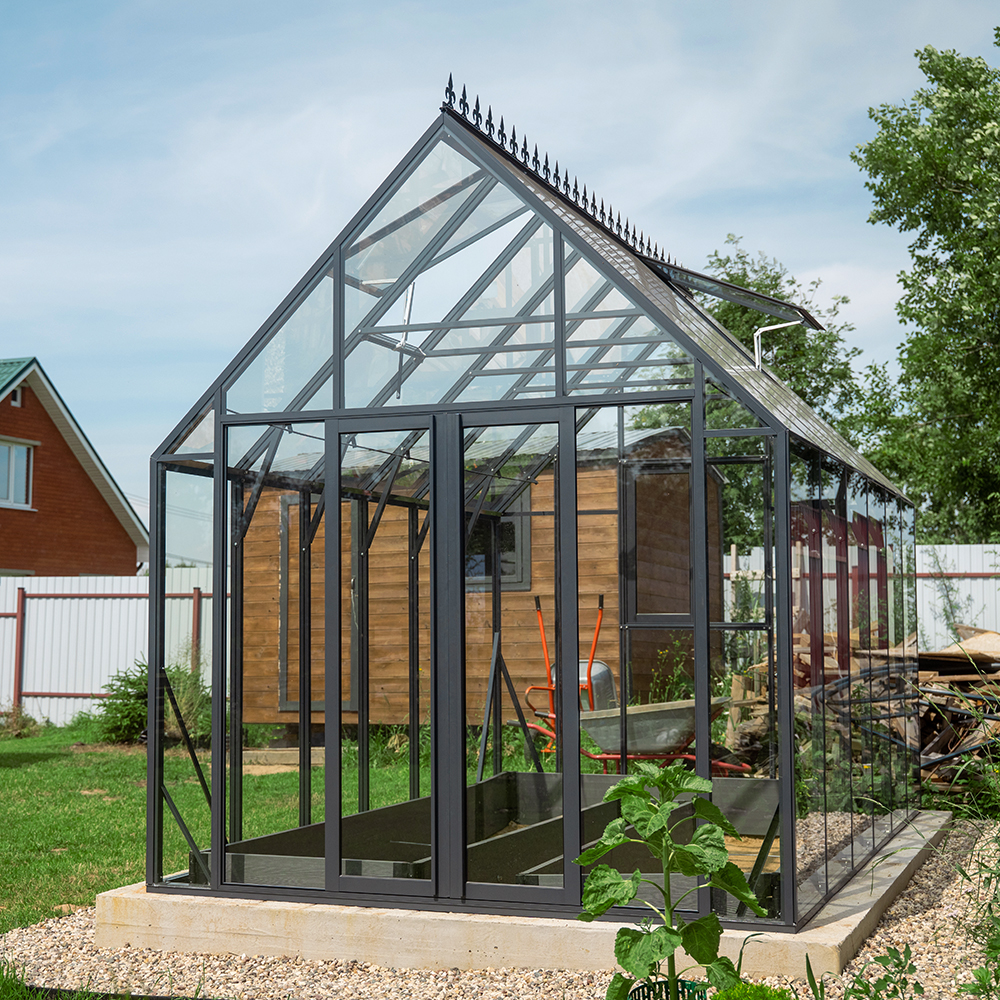Модель ESTRELLA – это теплица с увеличенной высотой. Такая конфигурация стала возможна за счёт уменьшения угла в коньке конструкции. Благодаря такому углу, верхний скат теплицы стал более приспособлен для ускоренного самостоятельного схода снега, который даже не успевает скапливаться на крыше.