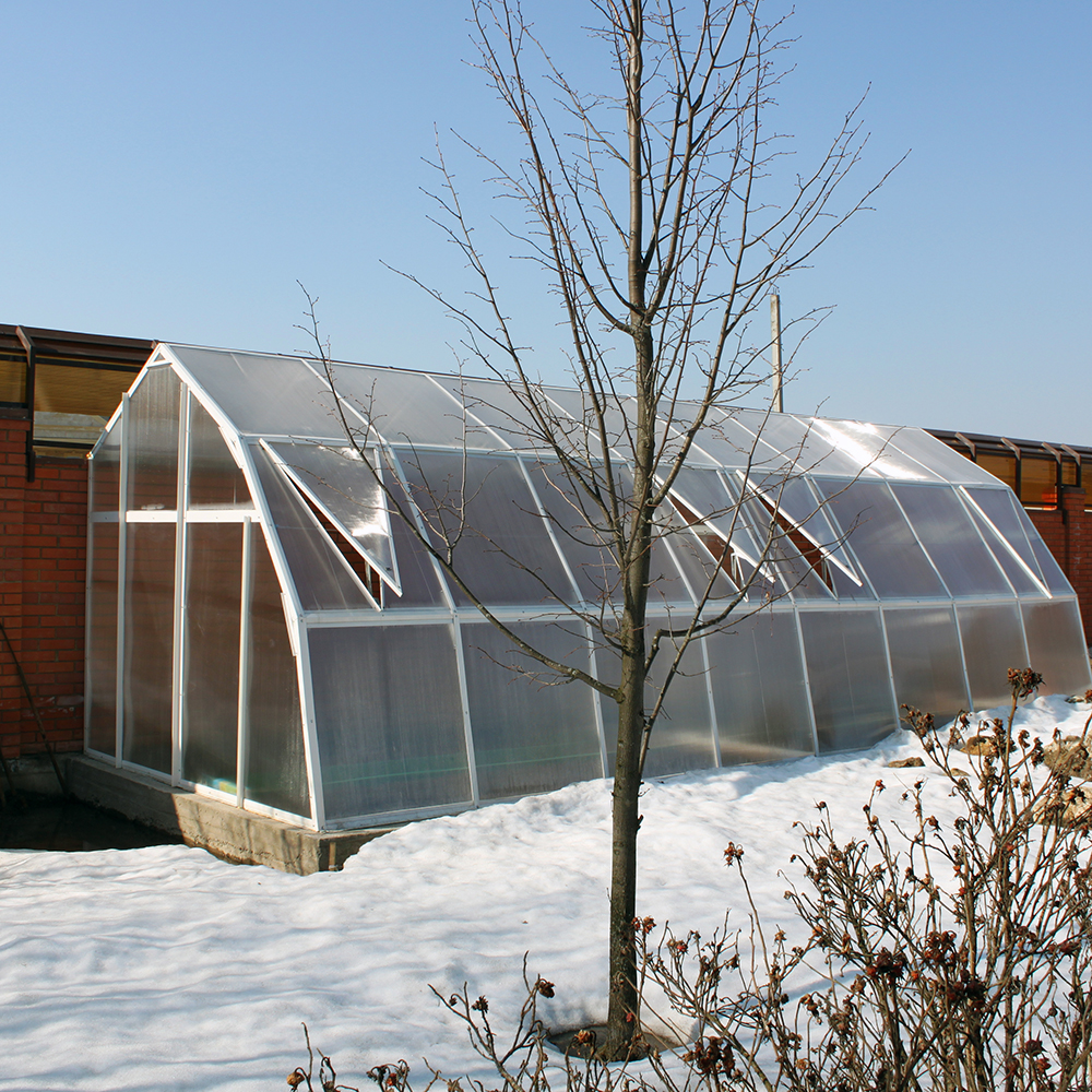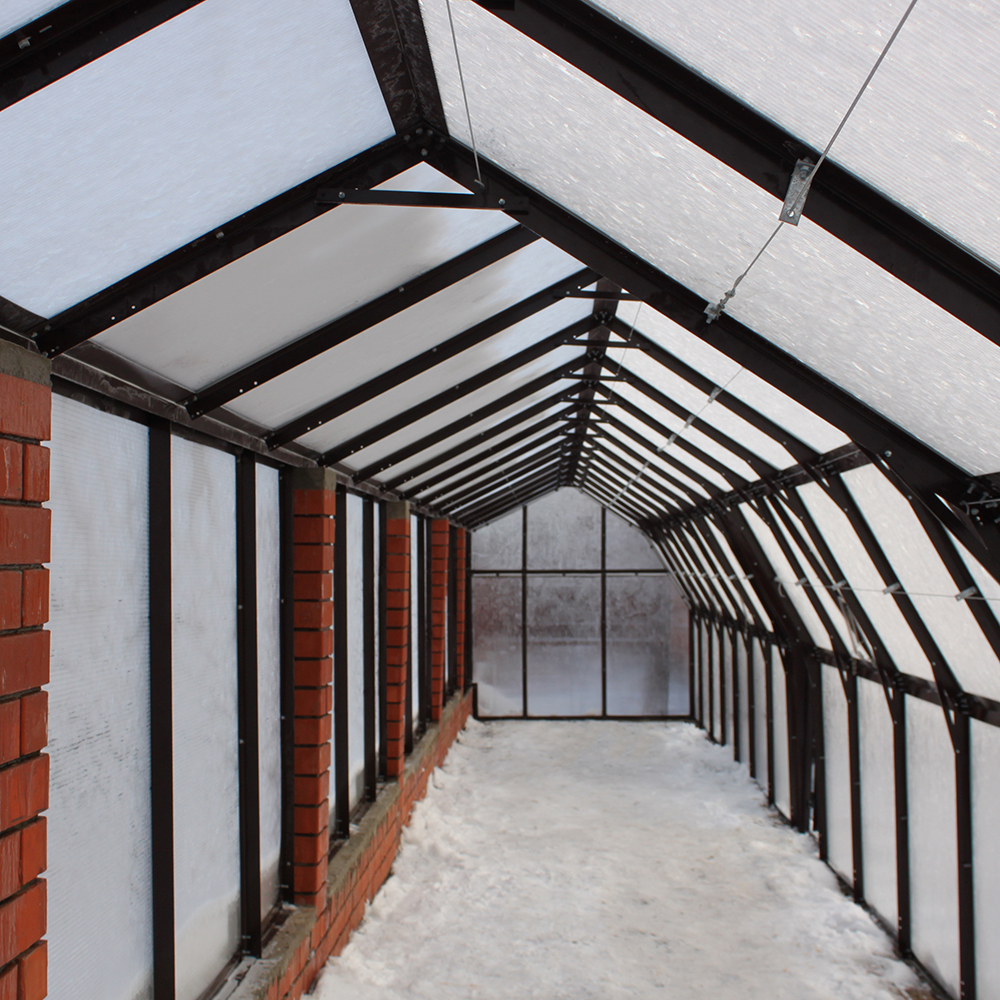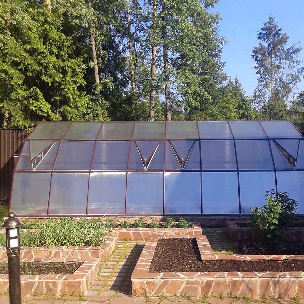 Оригинальная односкатная модель, позволяющая использовать полезную площадь садового или приусадебного участка максимально рационально! Функцию одной из сторон в такой конструкции выполняет стена любого стационарного сооружения, например, жилого дома, капитального ограждения или хозяйственной постройки.