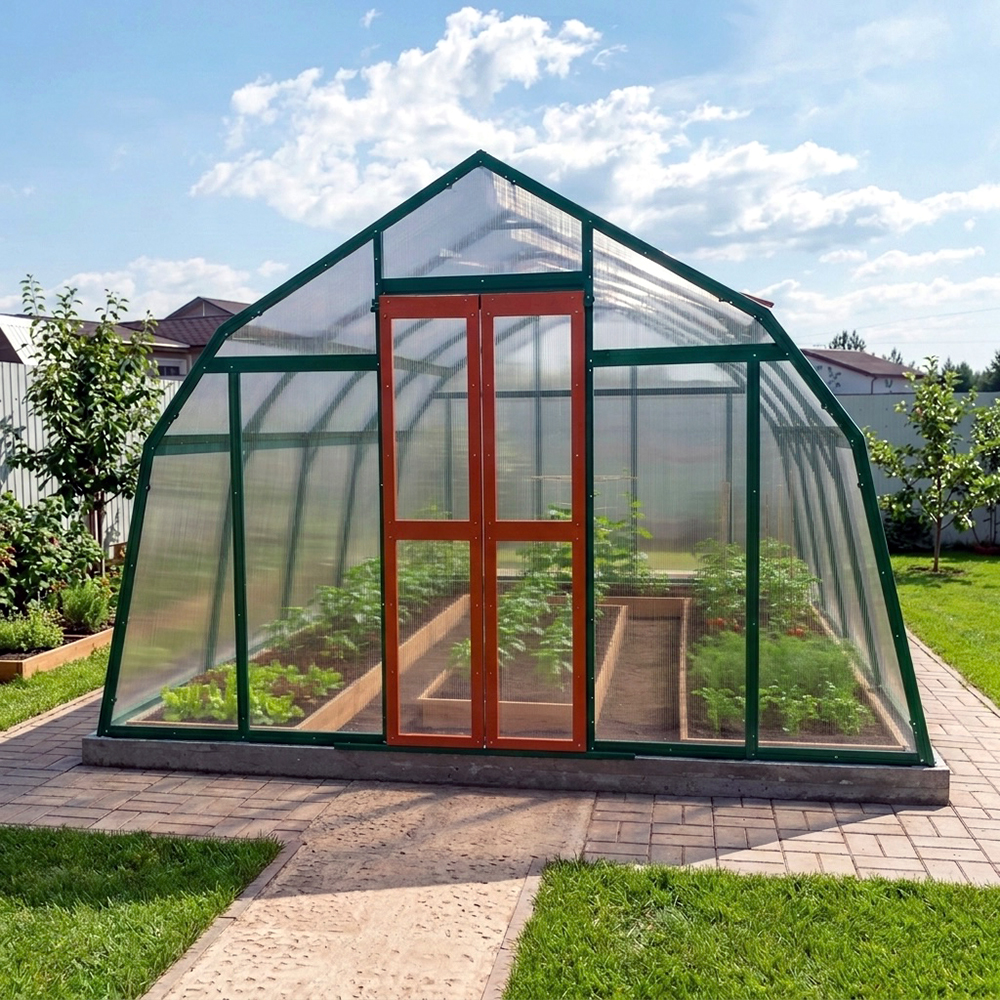 Модель теплицы РЯБИНА наилучшим образом подходит для дачных участков от 6 до 10 соток и в отличие от стандартных садовых теплиц, имеет несколько увеличенную ширину и высоту, что значительно расширяет объем полезного пространства. Поликарбонат до 10 мм максимально эффективно сохраняет температуру внутри, что особенно актуально для северных регионов.
