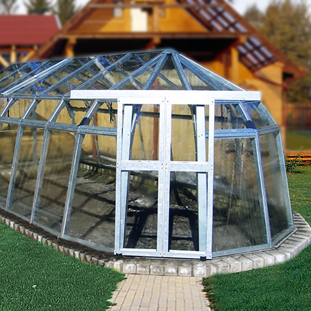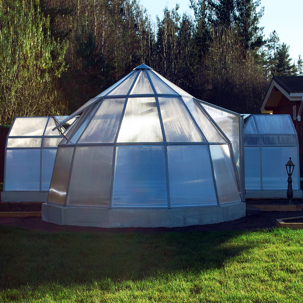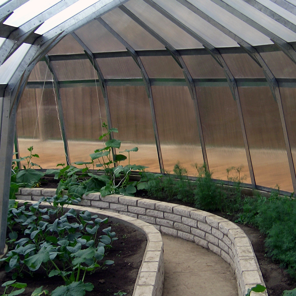 Радиальный торец одновременно позволяет расширить область применения и придает объекту своеобразную дизайнерскую «изюминку». Купив оранжерею с радиальным торцом, вы сможете создать красивый зимний сад, выращивать цветы или использовать постройку как обычную теплицу, но только более уютную.