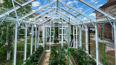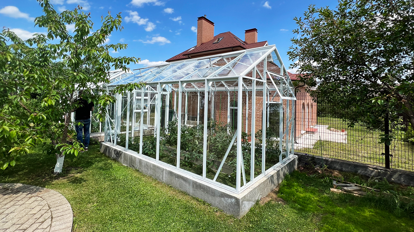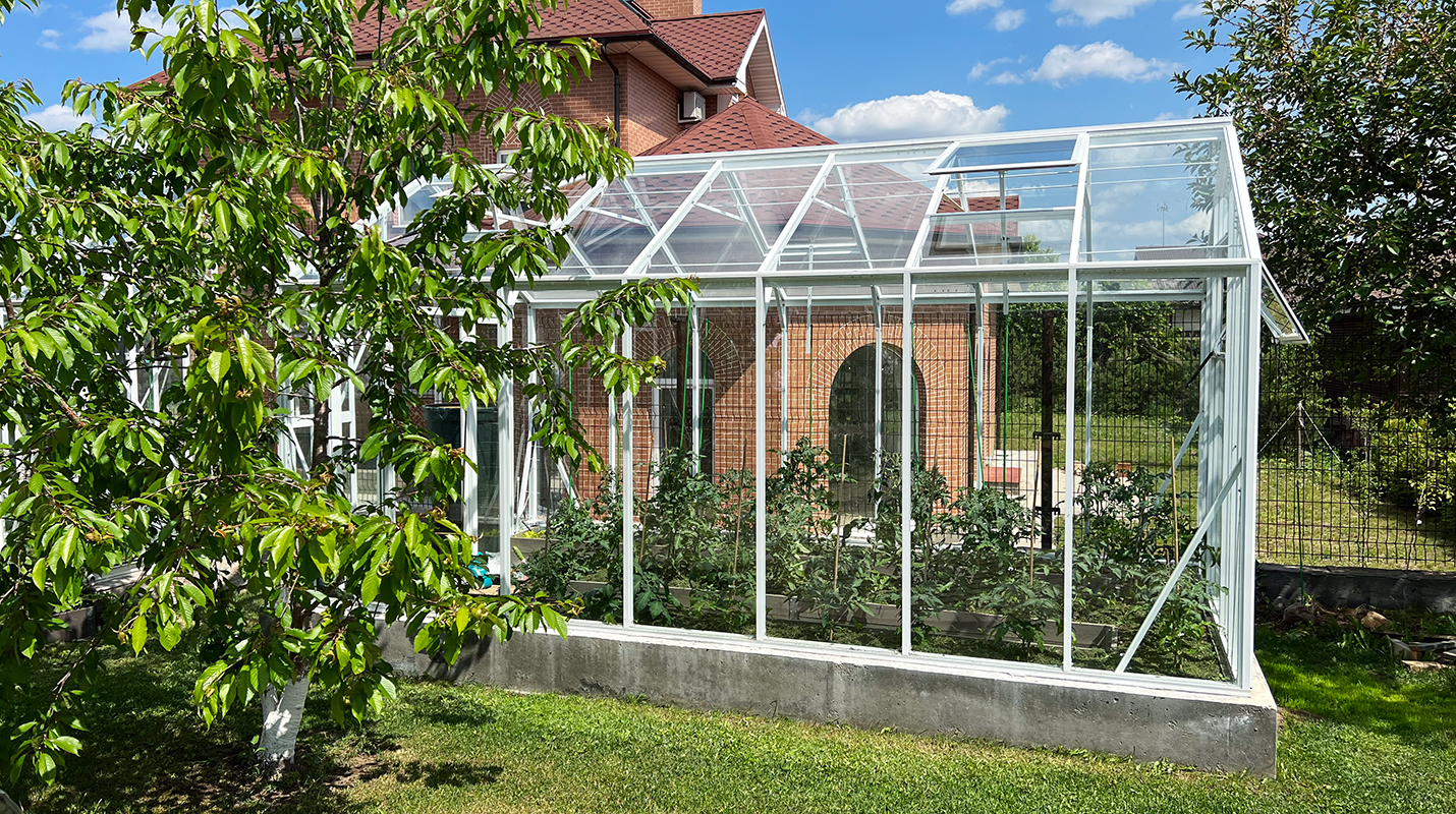 Теплица в белом исполнении – светлое и чистое решение с акцентом на аккуратную архитектуру участка. Цвет подчёркивает лёгкость формы и делает её выразительным элементом пространства, создавая ощущение порядка и визуальной гармонии.