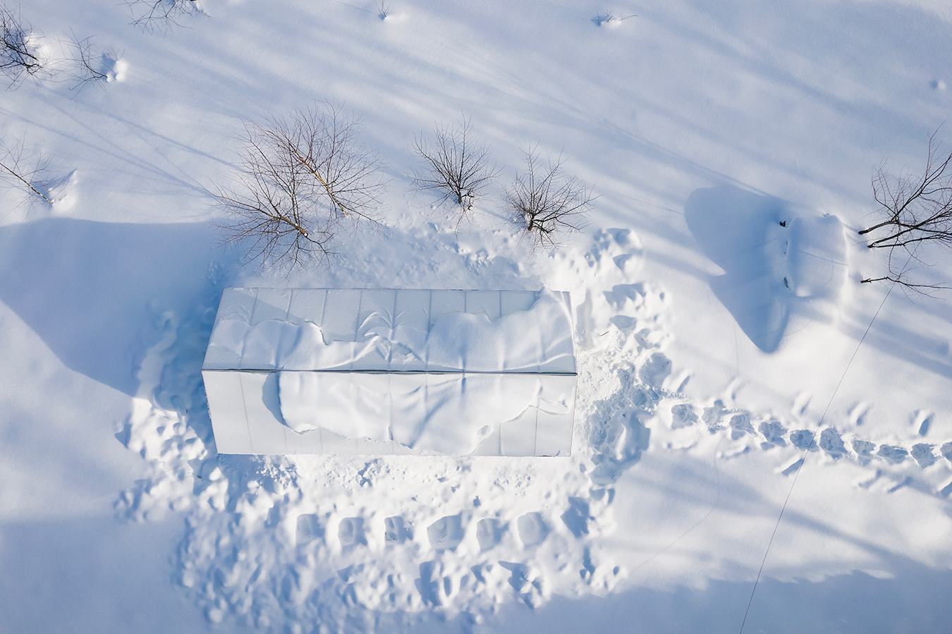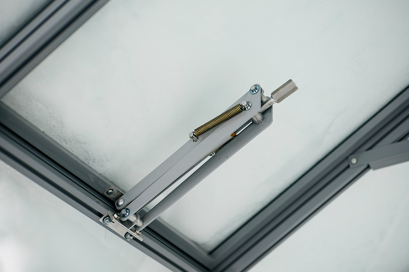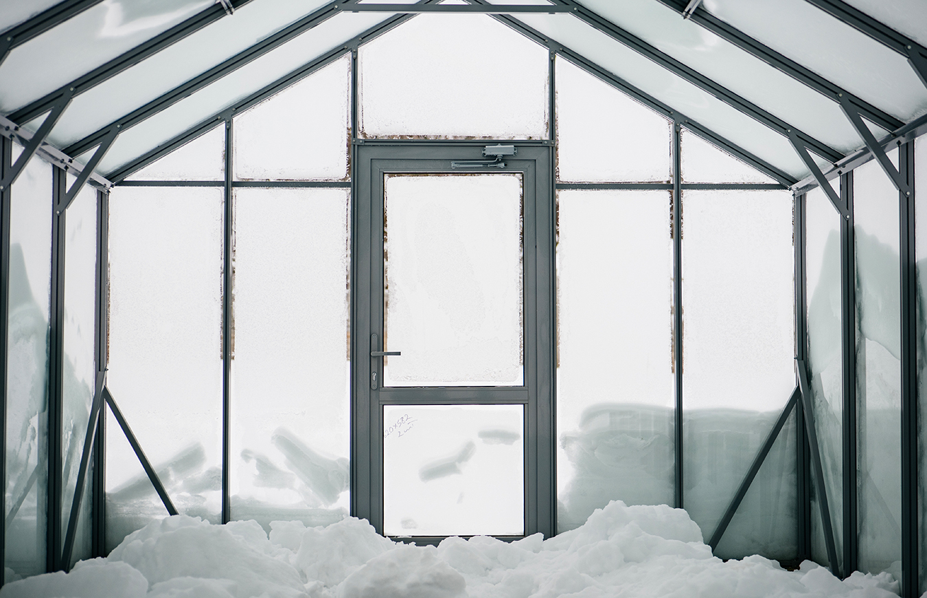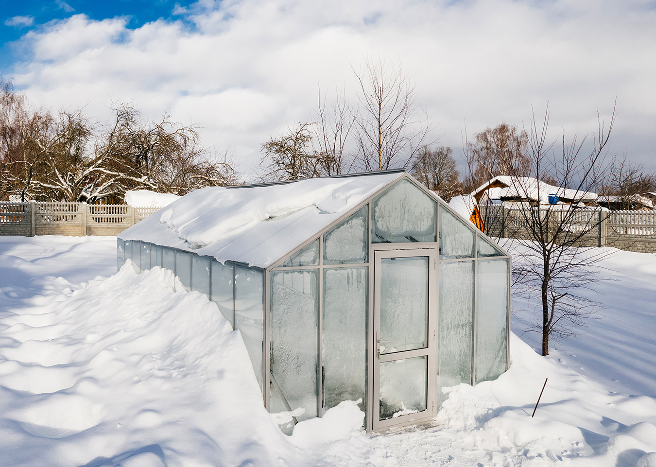 Сдержанное цветовое решение с акцентом на архитектуру и чистоту линий. Глубокий серый оттенок подчёркивает геометрию формы, а в зимний период теплица сохраняет уверенную устойчивость к снеговым нагрузкам, оставаясь выразительным элементом участка.