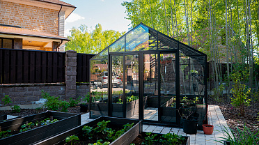 Теплица БИОНИКА Классик – выразительный акцент участка и пространство для любимого хобби. Лаконичная архитектура подчёркивает характер проекта, а продуманная форма делает теплицу удобной и естественной частью повседневной жизни.