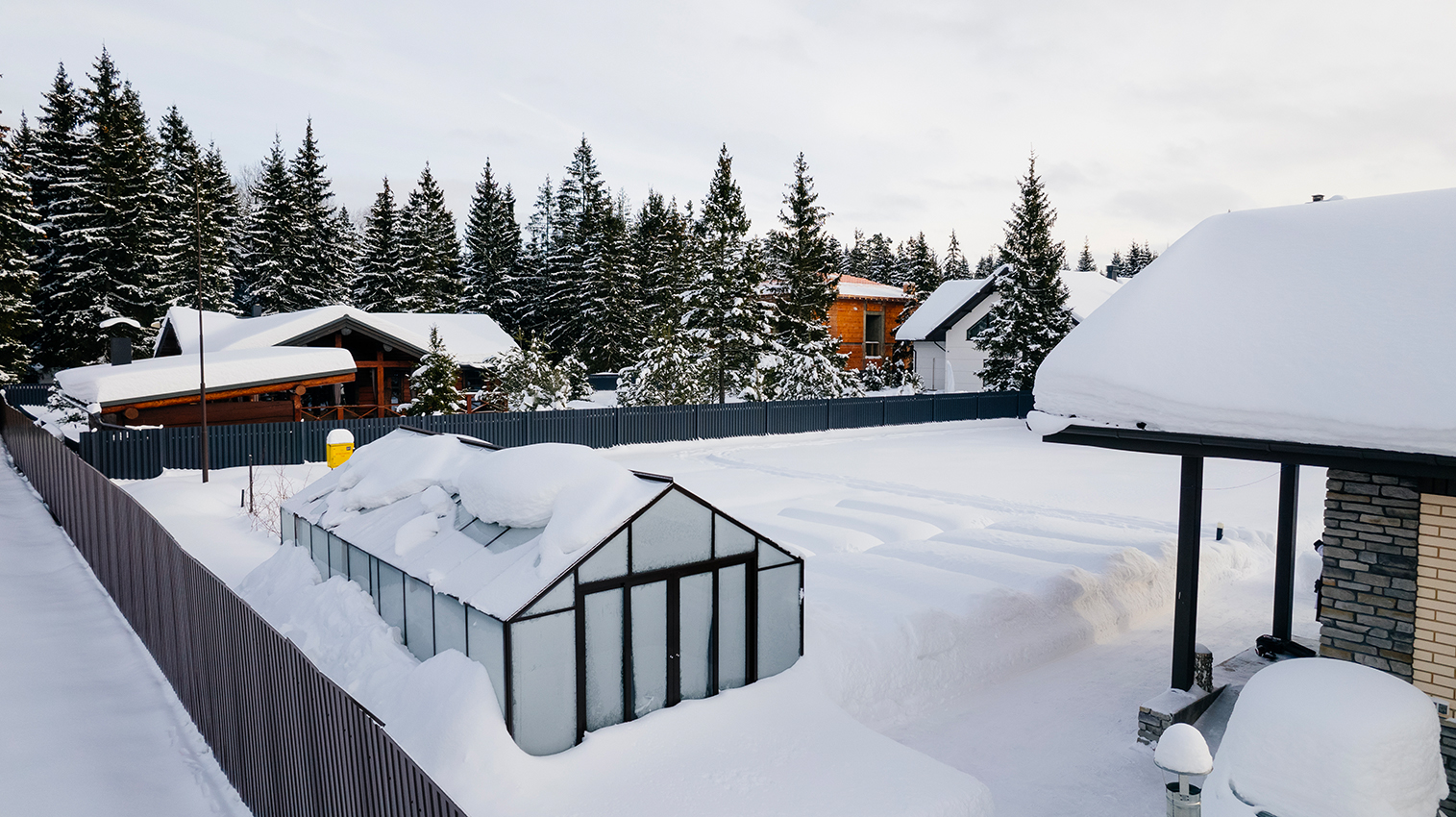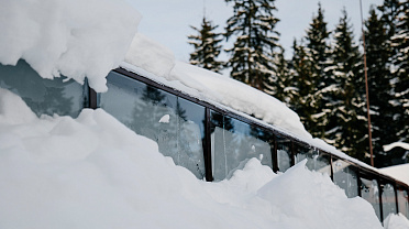 Проект демонстрирует уверенную эксплуатацию в холодное время года. Конструкция рассчитана на повышенные снеговые и ветровые нагрузки, сохраняя стабильность и надёжность даже в условиях зимнего сезона.