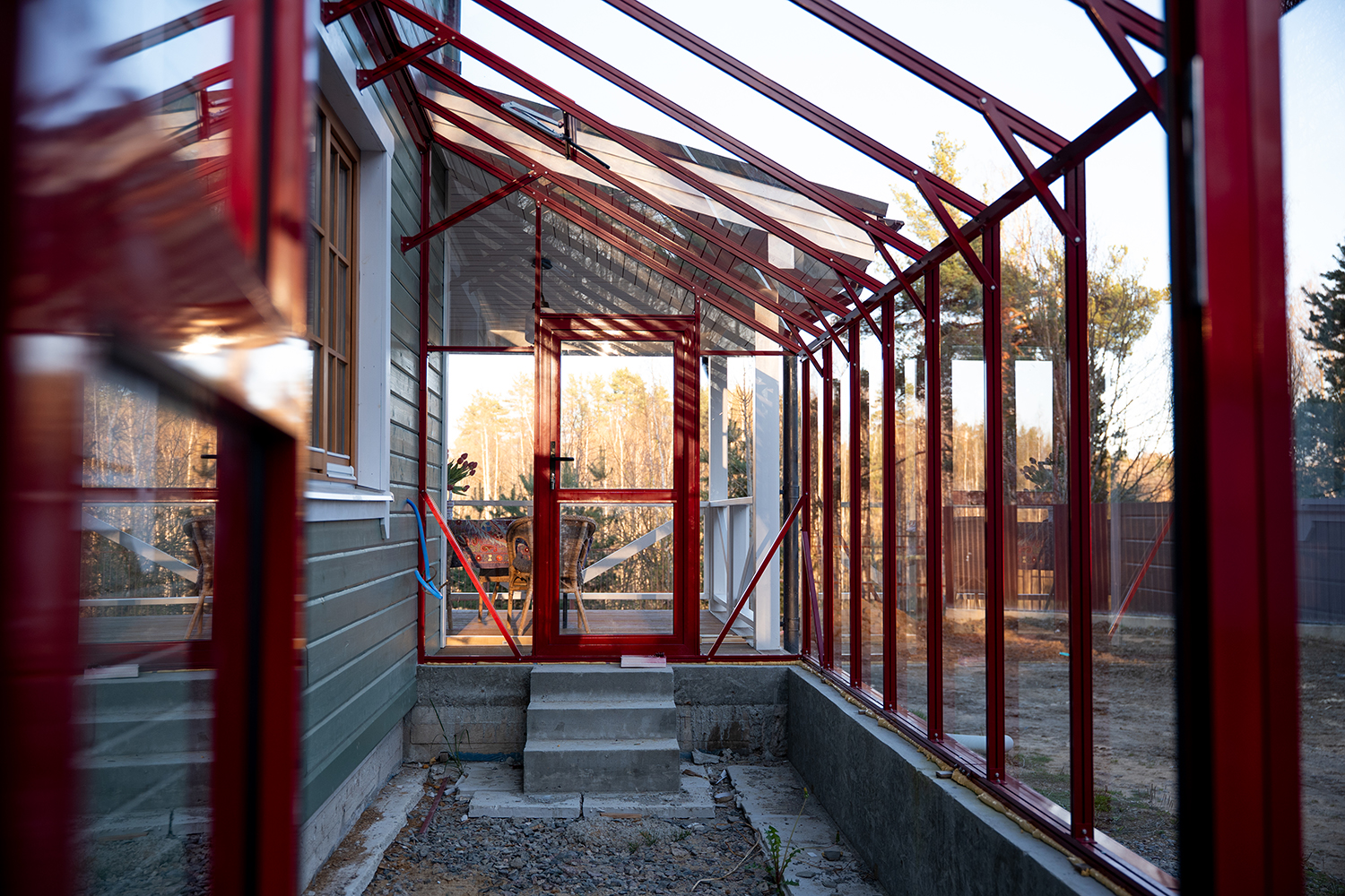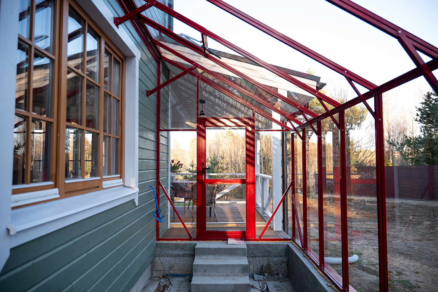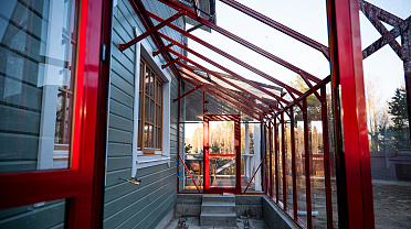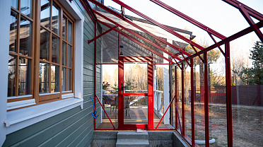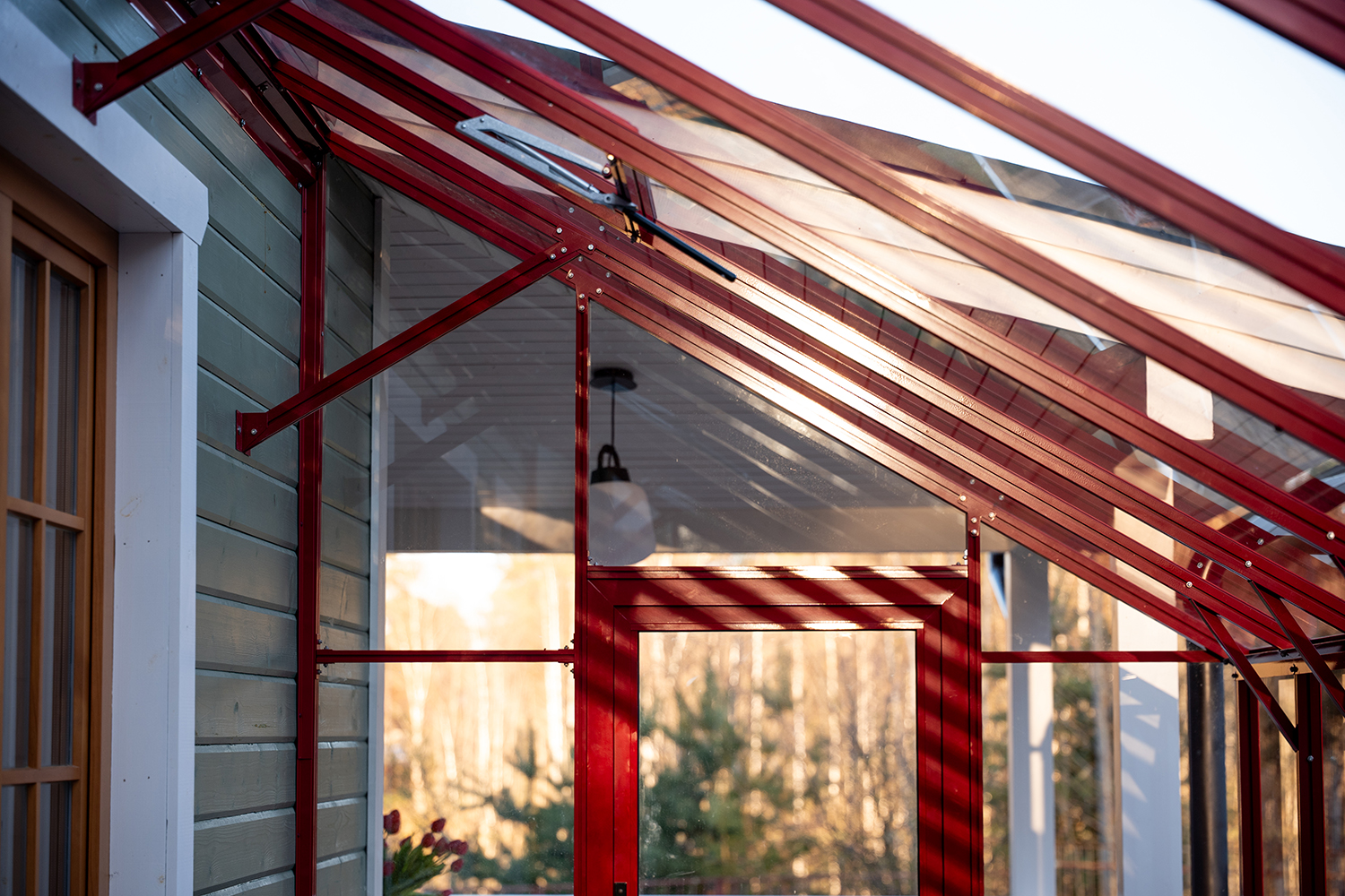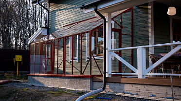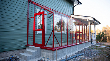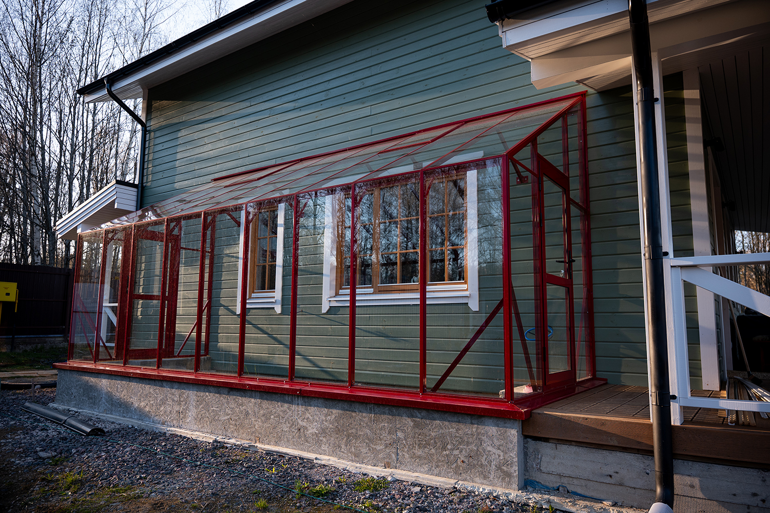 Решение, интегрированное в архитектуру дома, где каждая деталь работает на удобство. Примыкание к зданию формирует защищённое и тёплое пространство, делая уход за растениями более комфортным и естественным в повседневной жизни.
