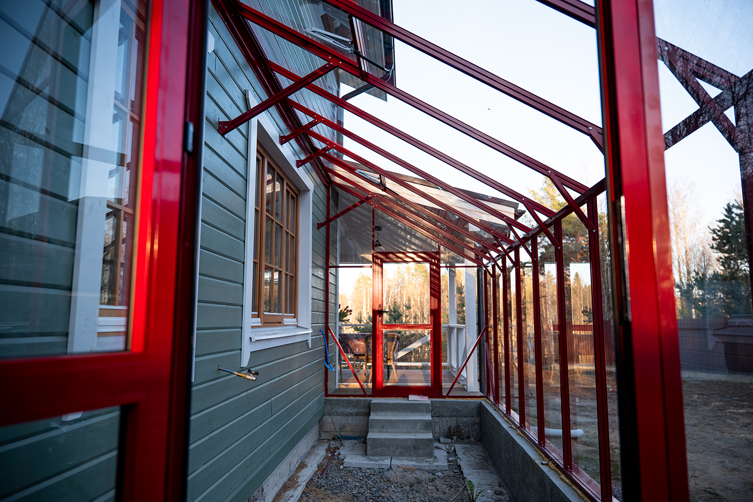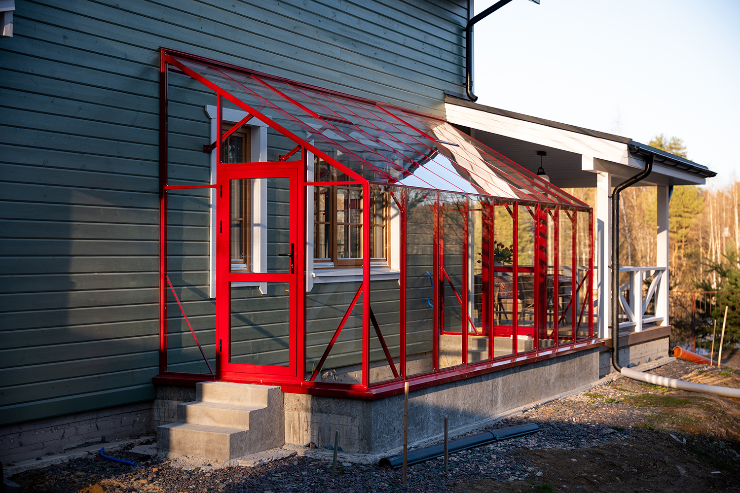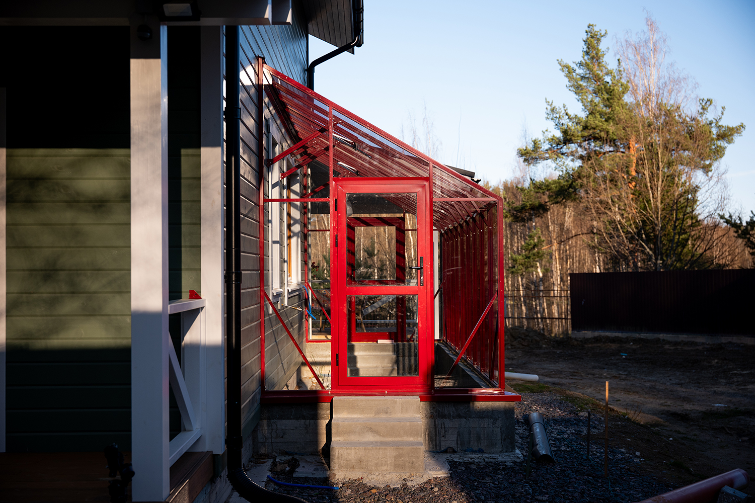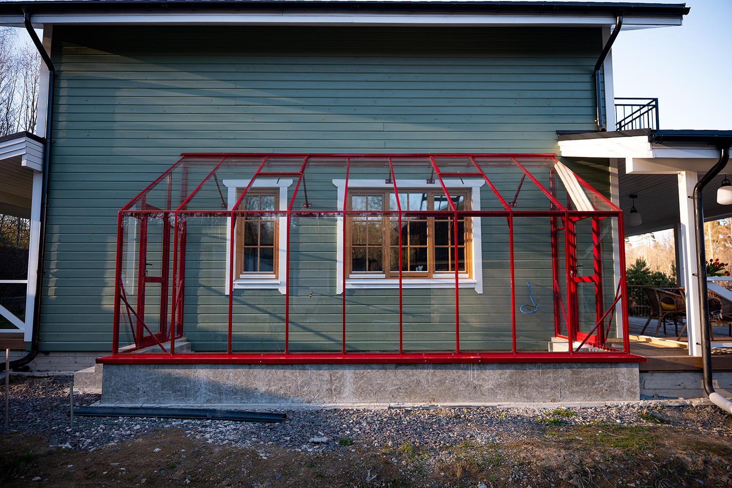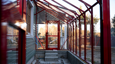 Решение, интегрированное в архитектуру дома, где каждая деталь работает на удобство. Примыкание к зданию формирует защищённое и тёплое пространство, делая уход за растениями более комфортным и естественным в повседневной жизни.