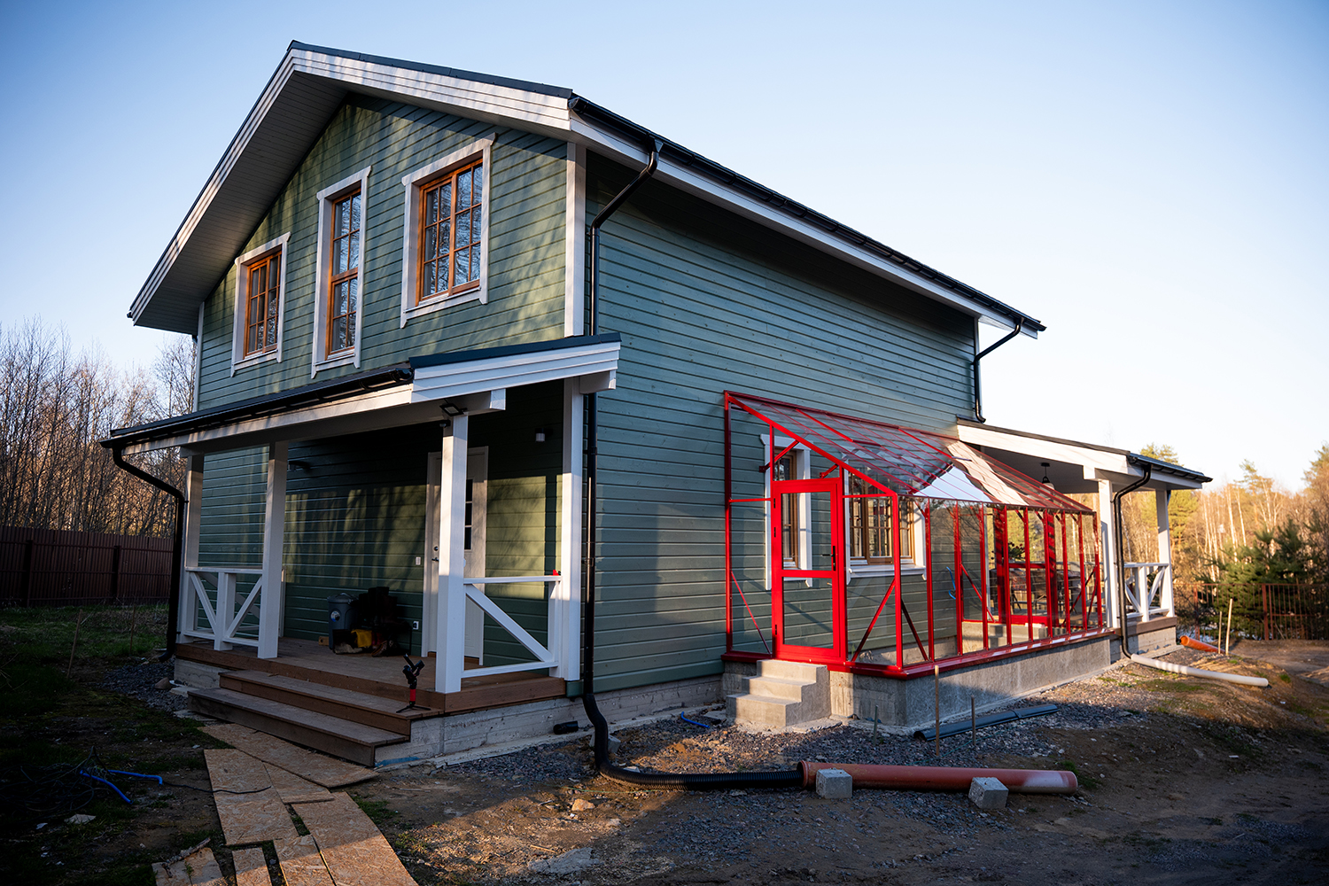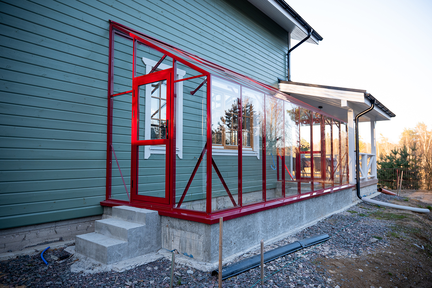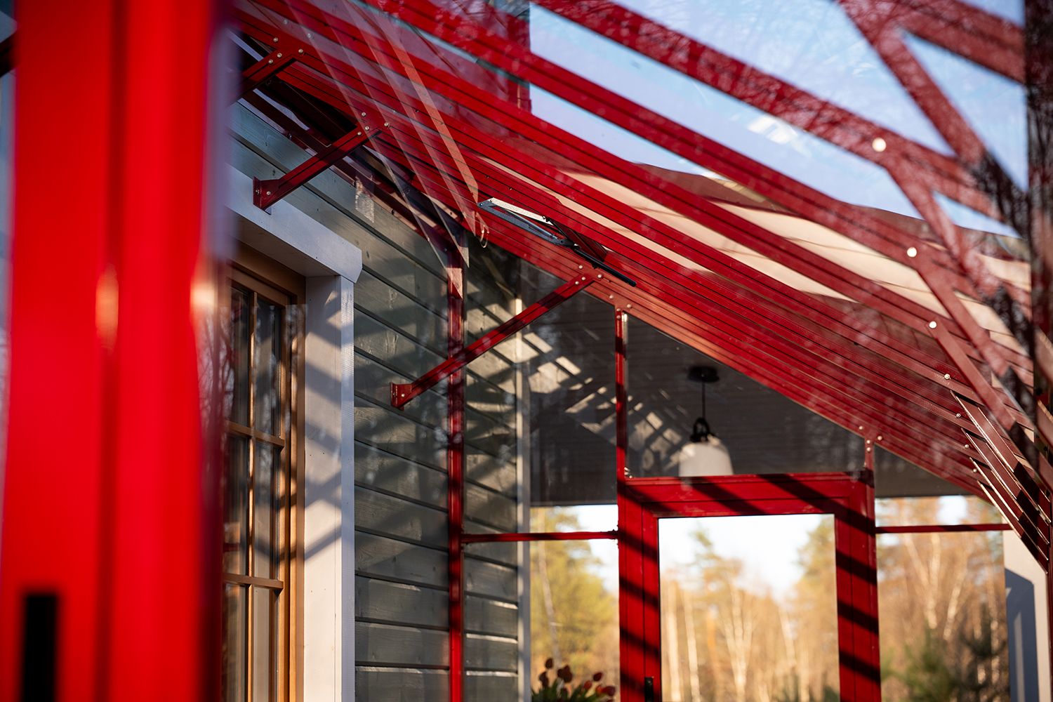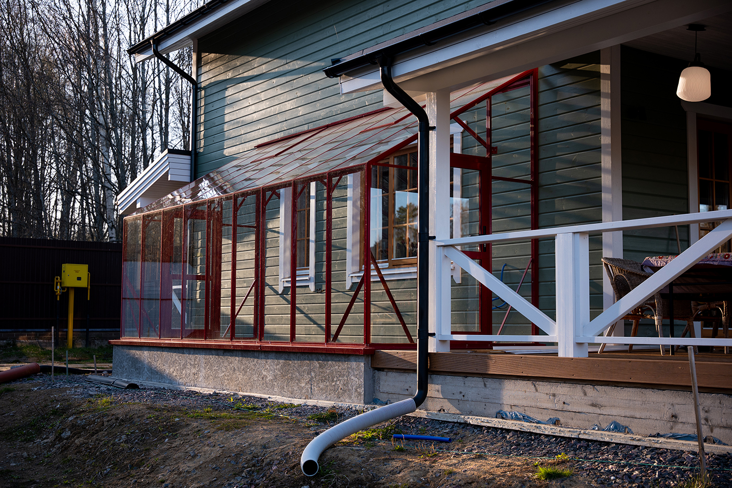 Решение, интегрированное в архитектуру дома, где каждая деталь работает на удобство. Примыкание к зданию формирует защищённое и тёплое пространство, делая уход за растениями более комфортным и естественным в повседневной жизни.